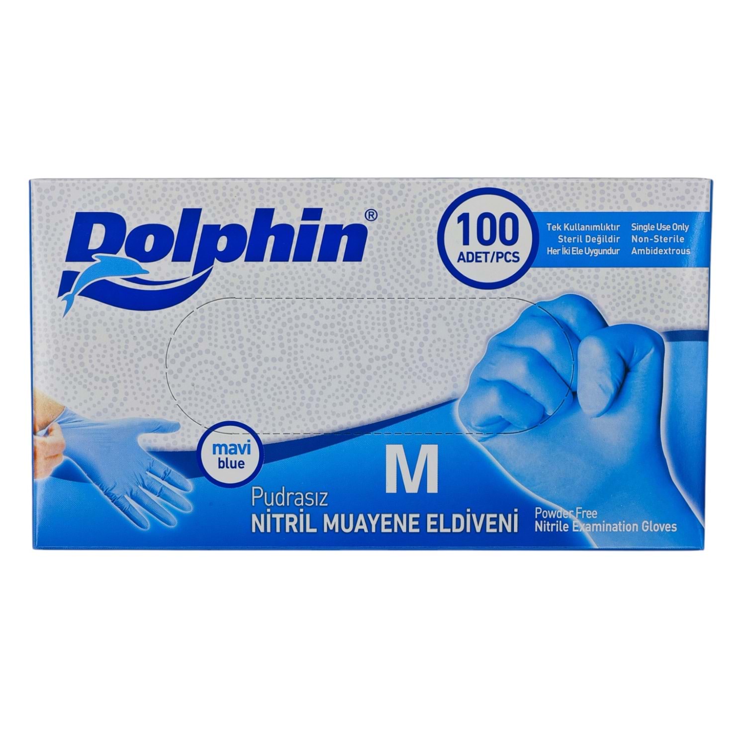 1924 Dolphin Pudrasız Nitril Muayene Eldiveni (M) - Mavi