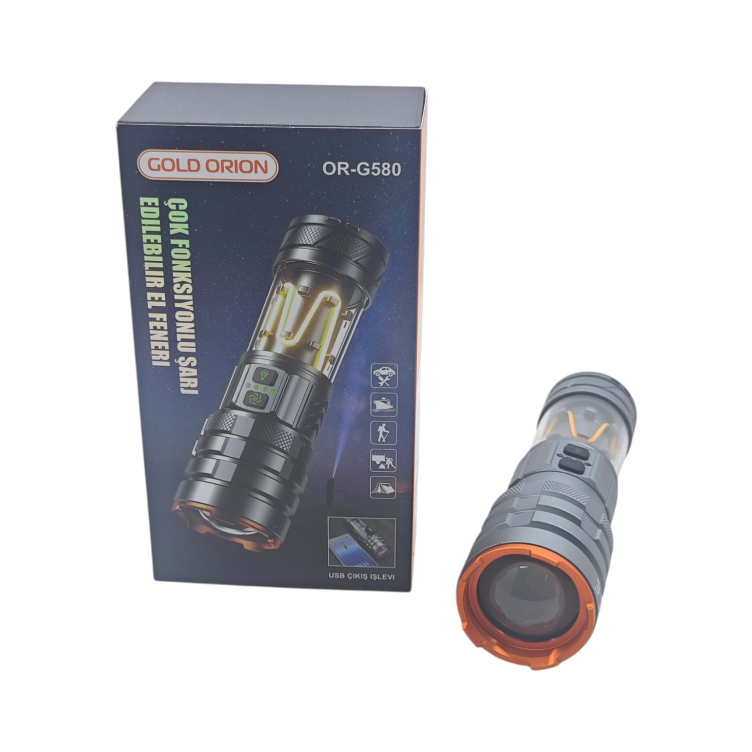 OR-G580 Gold Orion Fonksiyonlu Şarjli El feneri