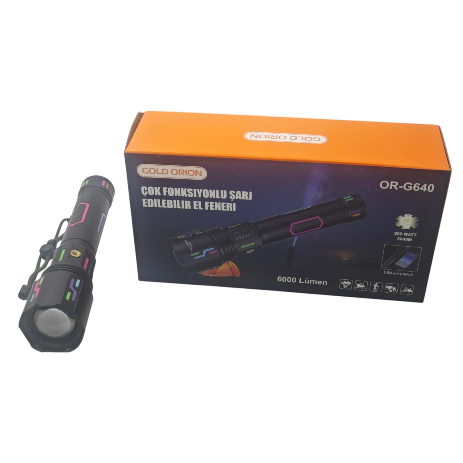 OR-G640 Gold Orion 200W Şarjlı El Feneri 6000 Lümen