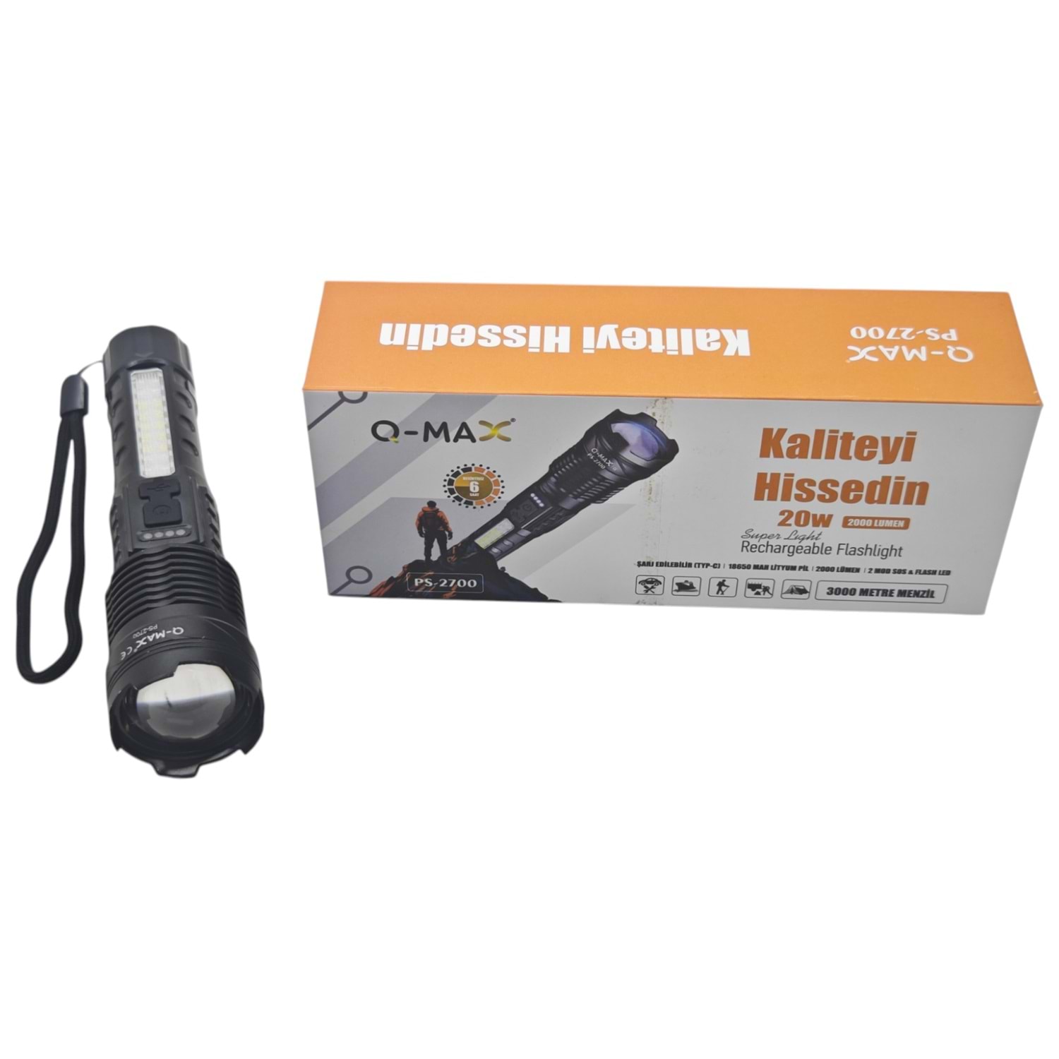 PS-2700 Q-Max 20W Led Şarjlı El Feneri 2000 Lümen