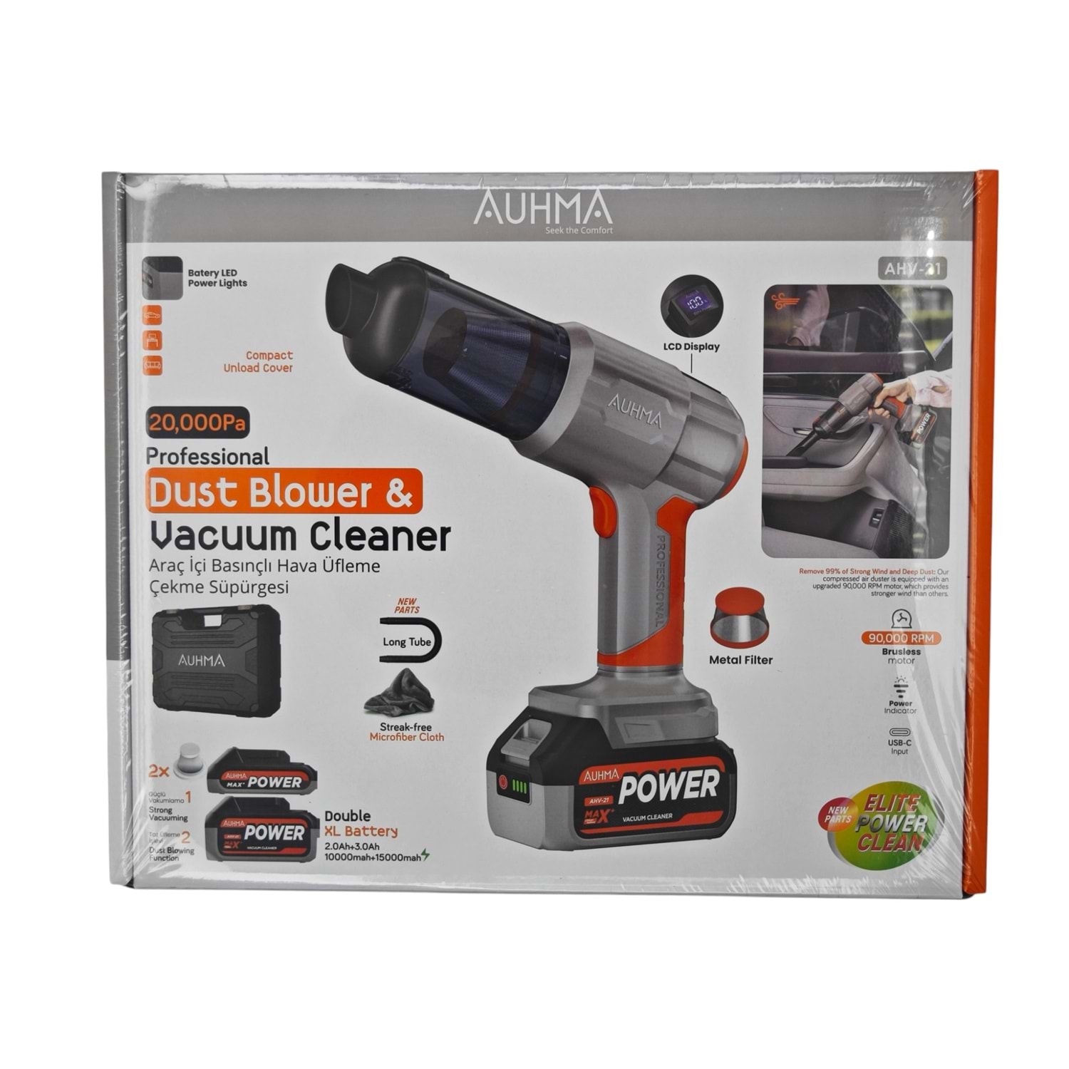 AHV-21 Auhma Şarjlı Araç İçi Hava Üfleme ve Çekme El Süpürgesi