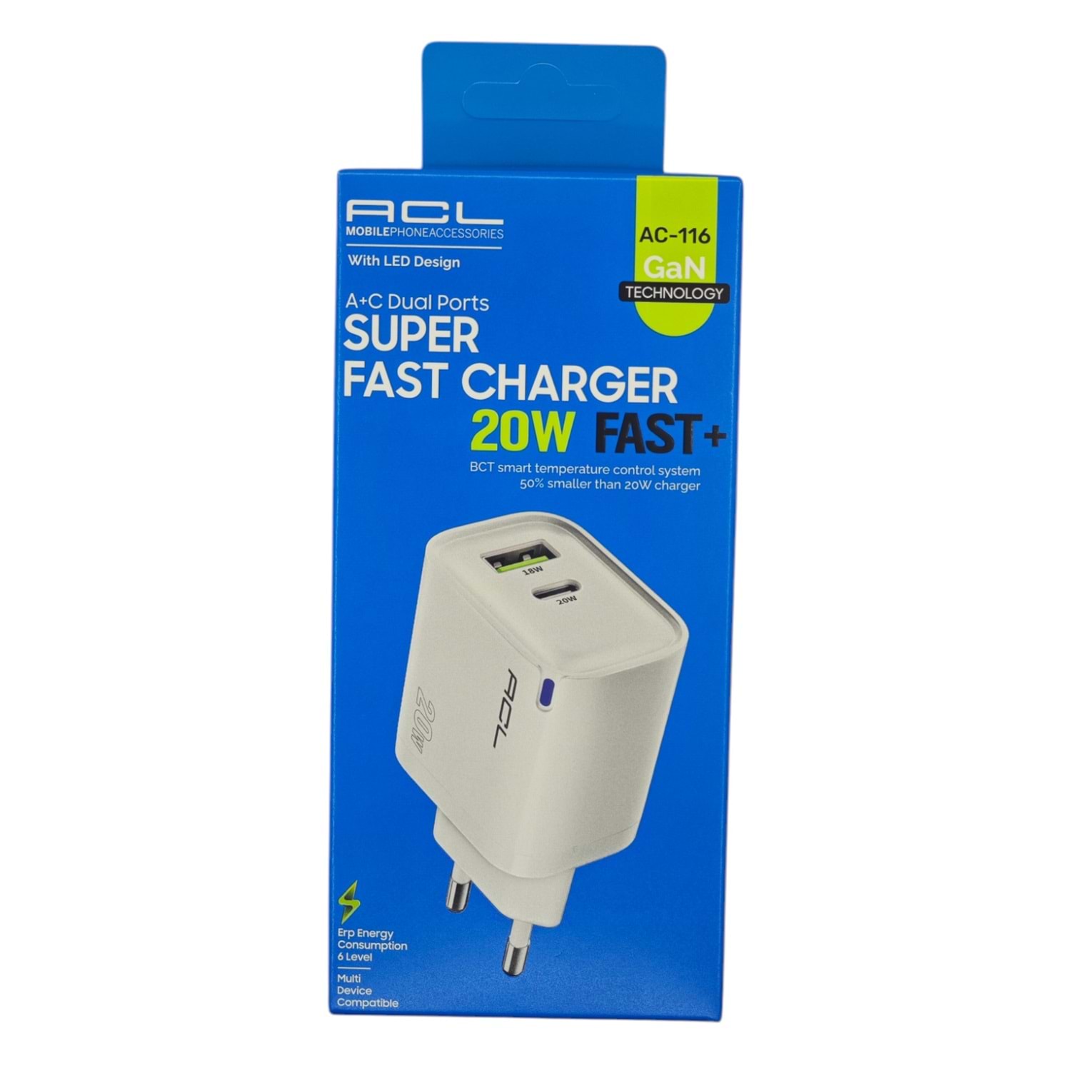 AC-116 ACL PD 20W 1*USB-A USB-C Slotlu Hızlı Şarj Aleti