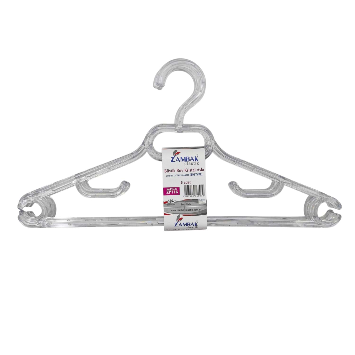 ZP216 Zambak Plastik Büyük Boy Kırıstal Elbise Askısı 6lı