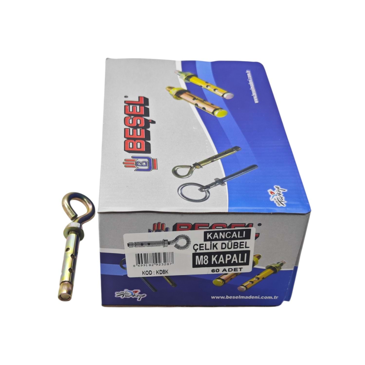 KD8A Beşel Kancalı Çelik Dübel M8 100mm - Kapalı